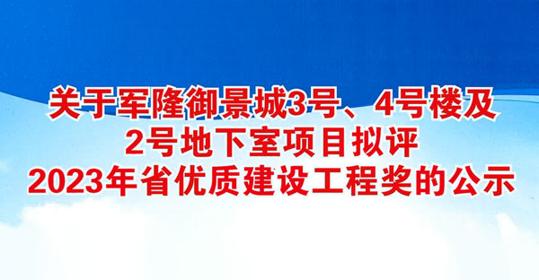 關(guān)于軍隆御景城3號、4號樓及2號地下室項目擬評2023年省優(yōu)質(zhì)建設(shè)工程獎的公示